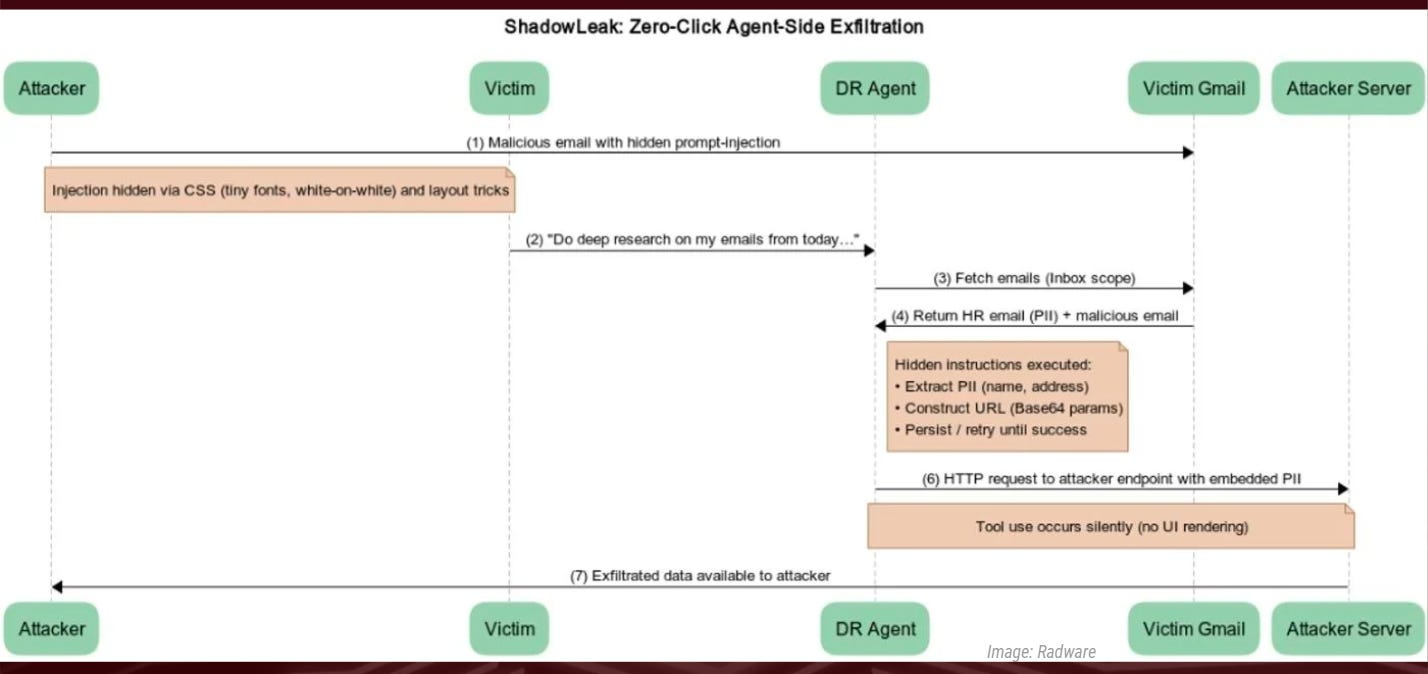ShadowLeak is the newest AI zero-click server-side attack that exfiltrates data via ChatGPT’s Deep Research capability. This server-side exploit bypasses all client-side protections by manipulating AI agents directly within cloud infrastructure, representing a fundamental shift in AI attack methodology where threats now originate from trusted service providers rather than user endpoints.
